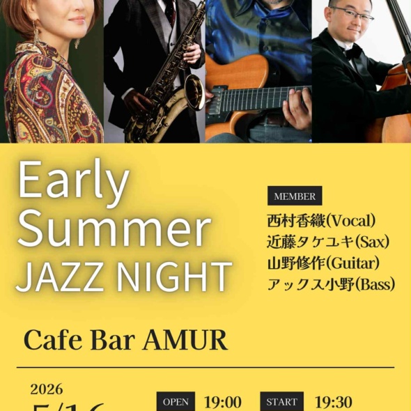 福岡市 西村香織(vo)/近藤タケユキ(sax)/山野修作(g)/アックス小野(b) - 2026.03.20 山野修作 ライブ情報