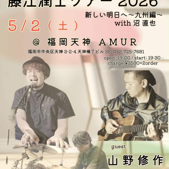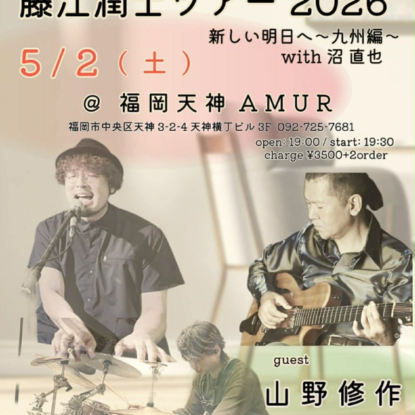 福岡市 藤江潤士(vo)/山野修作(g)/沼直也(dr) - 2026.04.18 山野修作 ライブ情報