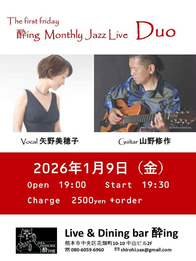 NEWS & TOPICS TOP NEWS & TOPICS 熊本市 矢野美穂子(VO)/山野修作(G) ニュース & トピックス NEWS & TOPICS 熊本市 矢野美穂子(Vo)/山野修作(g) 2026.01.09 2026年1月9日(金)19:30〜 酔ing矢野美穂子(Vo)/山野修作(g) ニュース・トピックス一覧を表示