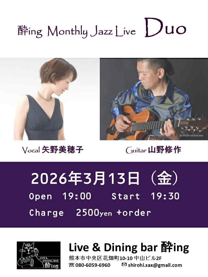 NEWS & TOPICS TOP NEWS & TOPICS 熊本市 矢野美穂子(VO)/山野修作(G) ニュース & トピックス NEWS & TOPICS 熊本市 矢野美穂子(vo)/山野修作(g) 2026.03.13 2026年3月13日(金) 19:30〜 酔ing矢野美穂子(vo)/山野修作(g) ニュース・トピックス一覧を表示